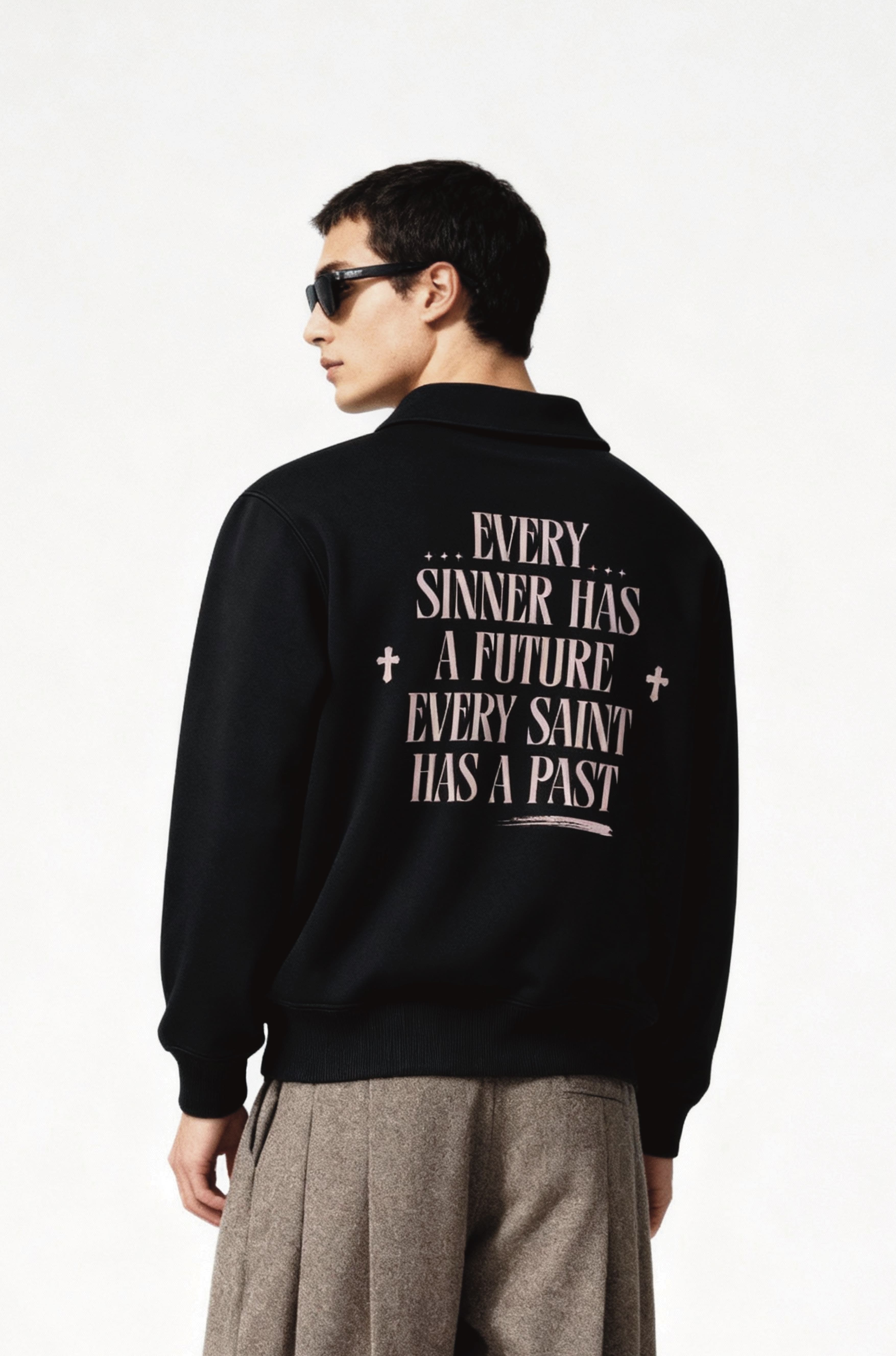 Deep quote half zipper sweatshirts